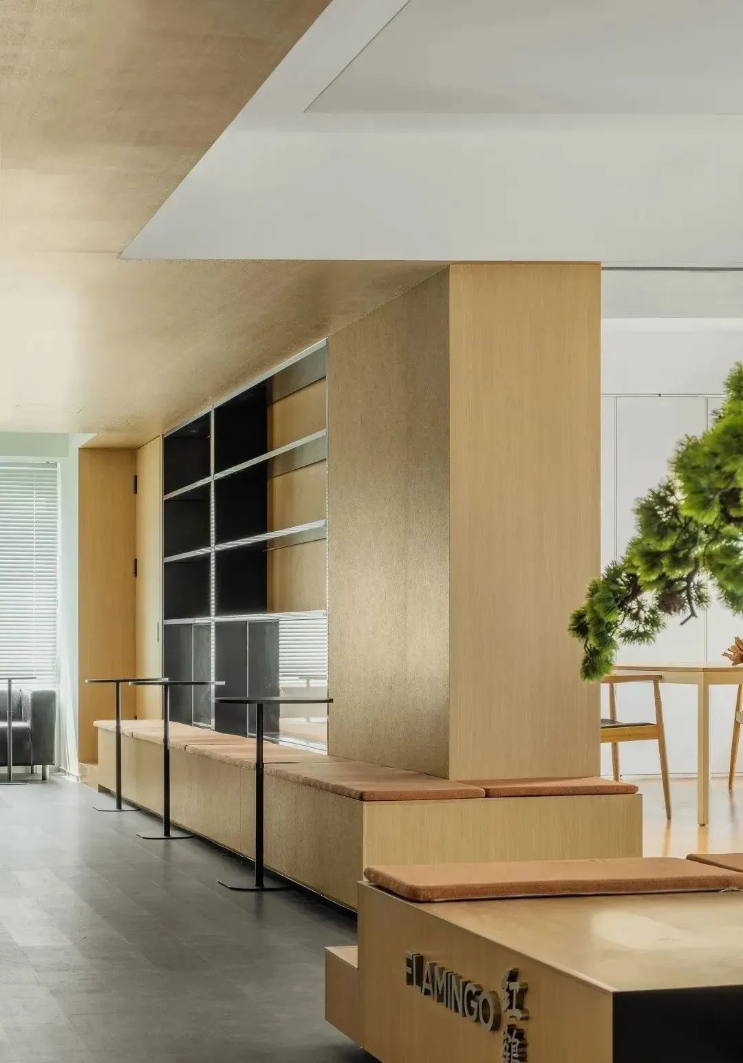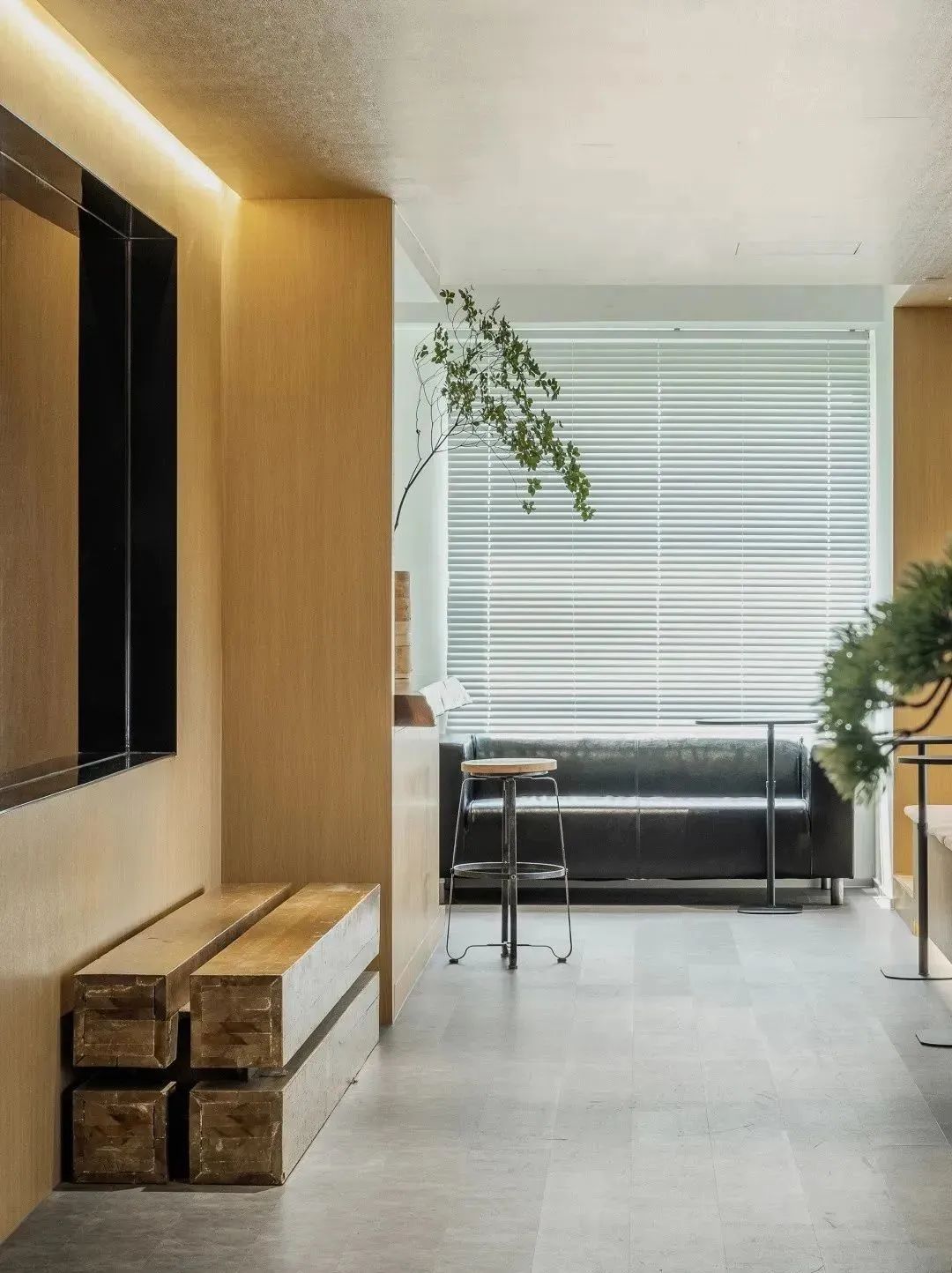 办公室入口处布置了前厅,结合绝佳的窗景,打造了一个具有复合功能的前厅。