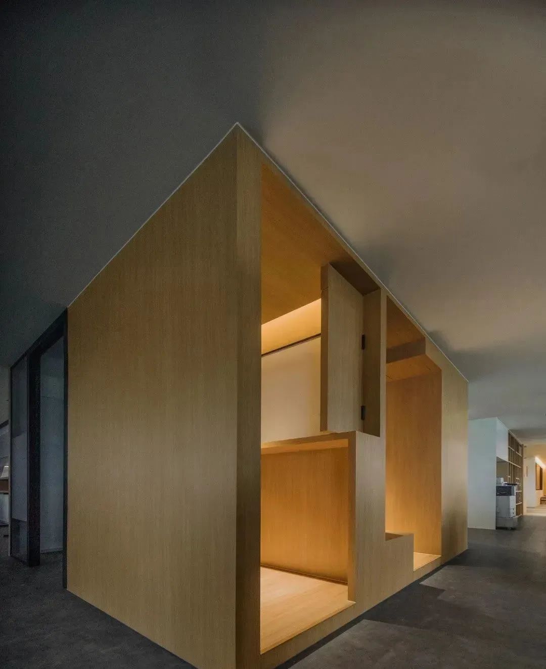 在这个490平方米的办公室中,设计师以“太湖石”作为空间概念,将其“透、漏、皱、瘦”的自然形态提炼为建筑空间,赋予了办公空间极致的实用功能与美学设计,呈现出有趣的空间效果。