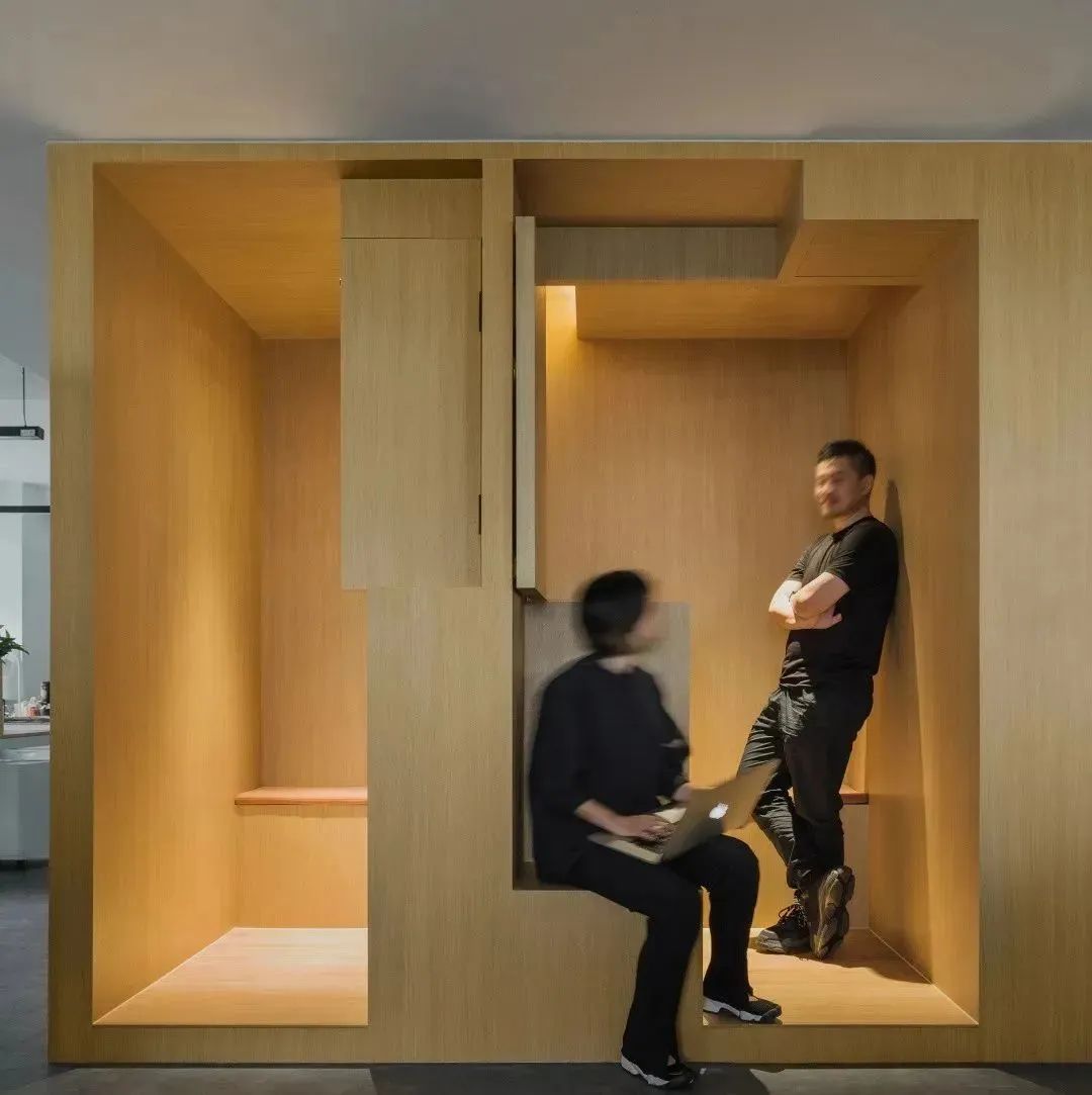 由太湖石演绎未来的工作间被放置在了开放办公区,可以满足员工的高频使用需求。